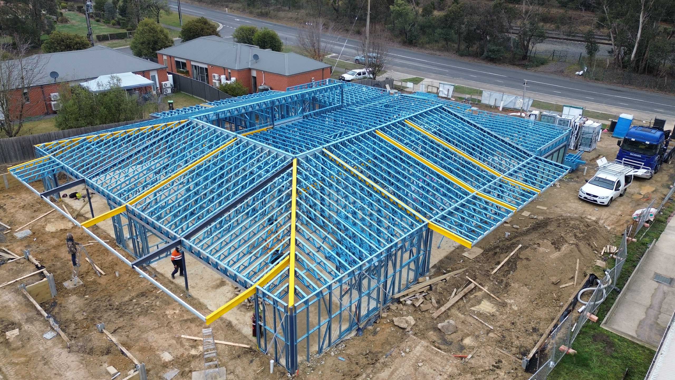 PROJECT INSIGHT: Long clear spans and efficient roof forms achieved through precise steel framing.